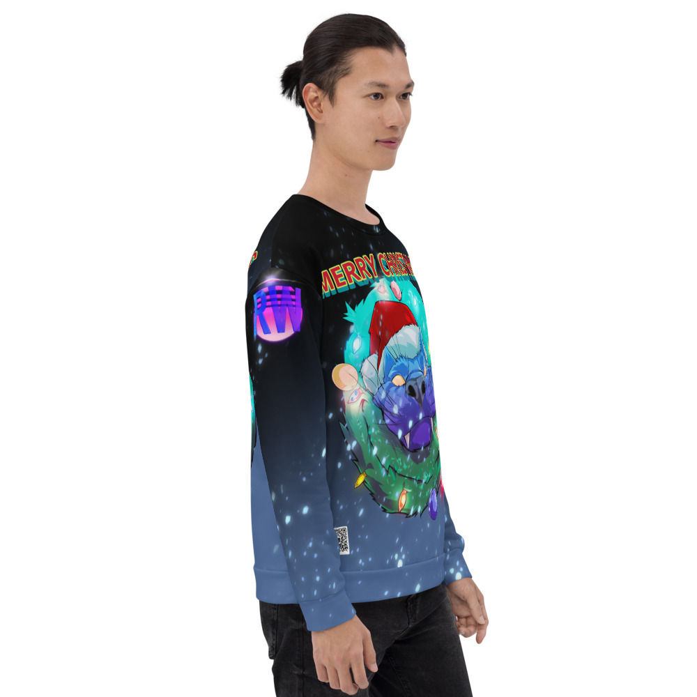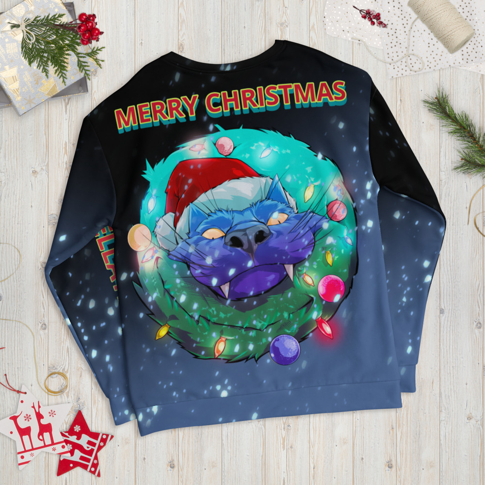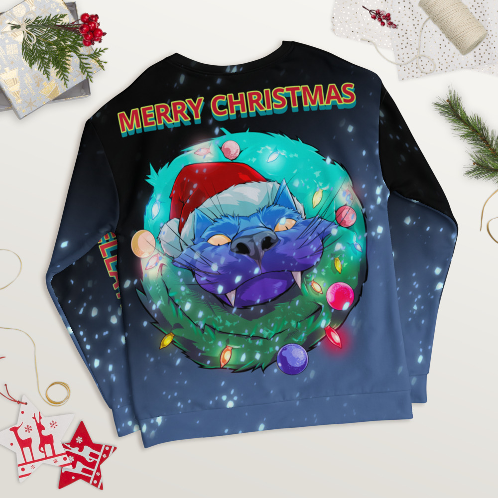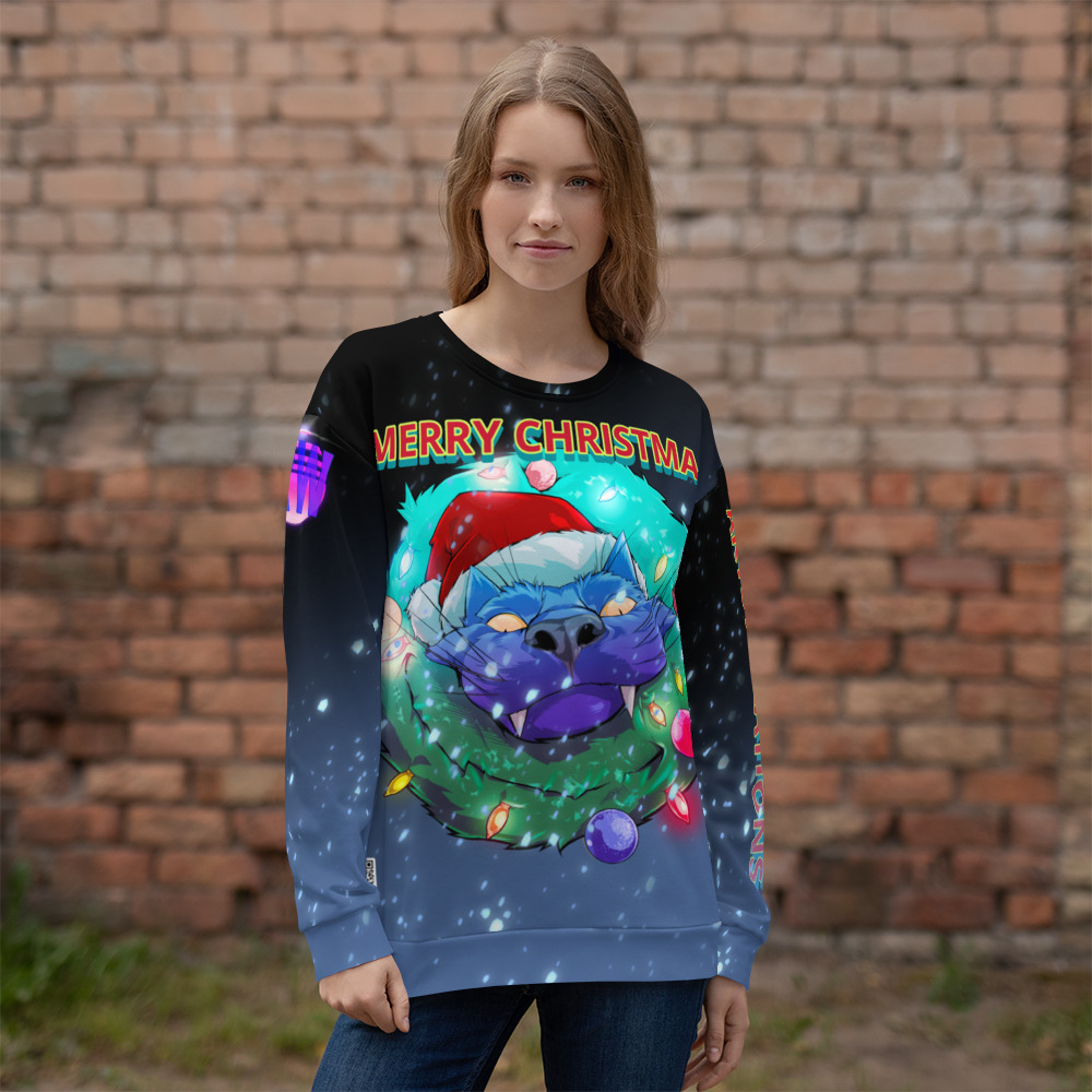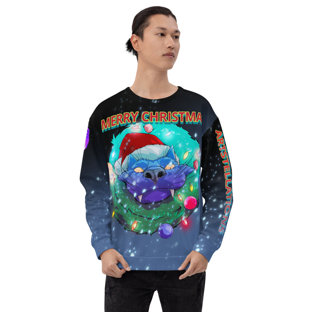 The merry Christmas cat art design is available in the All-Over Print Unisex Sweatshirt is made of a soft and durable fabric that feels great to wear.