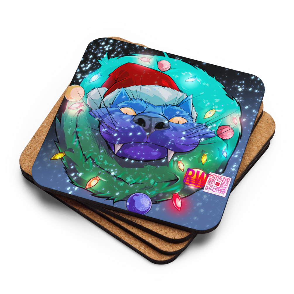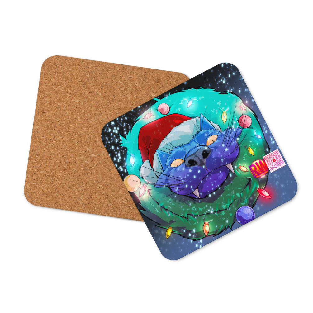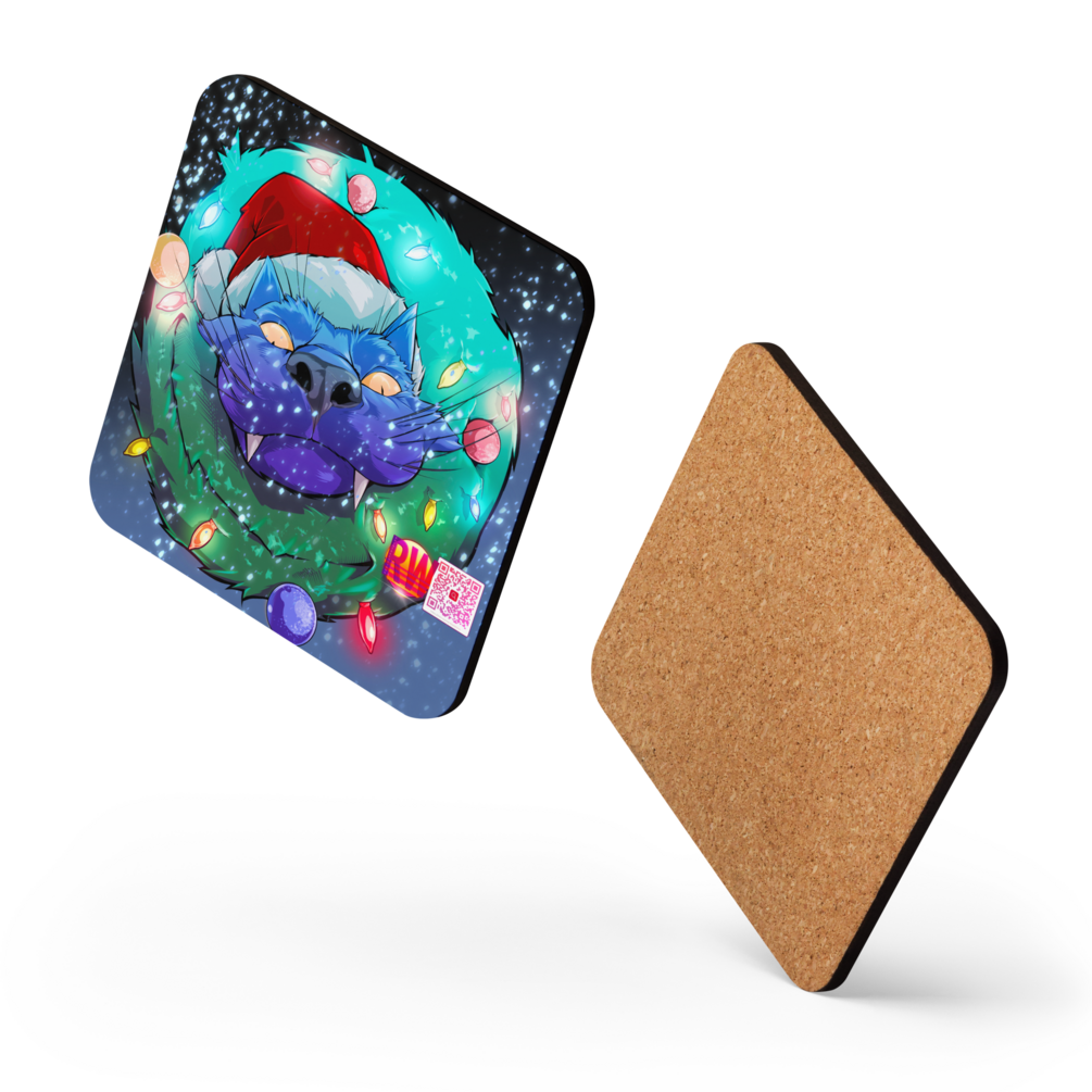 The holiday saber-toothed feline is back, this time it's hello beverage coaster, goodbye mug stain! Introducing the long-awaited Cork-Back Coaster that’s designed to protect your countertops and furniture from spills and scratches. It’s crafted from genuine cork, and hardboard, with a high-gloss coating that ensures a quality print. The coaster is heat-resistant, water-repellent, and easy to clean—just wipe it with a damp cloth.