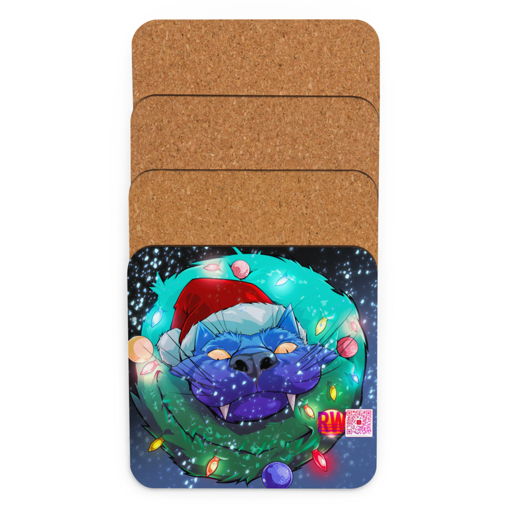Holiday Cat Cork-Back Coaster
